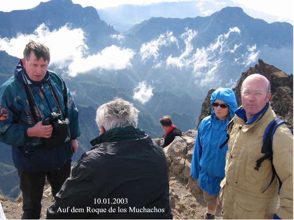 Nachdem am Vortag der höchste Punkt der Vulkanroute, der Deseada, das Ziel war, sollte am 10.01.2003 der höchste Punkt der gesamten Insel, der Roque de los Muchachos (2.426m), angesteuert werden.