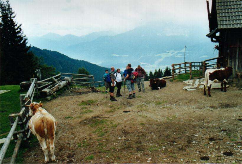 In der Wochenmitte wurde von einem Teil der Gruppe die Almen und Wälder der Kreuther Höhen erforscht, wobei es auch zu schönen Erlebnissen mit Einheimischen kam. Ein anderer Teil der Mannschaft versuchte sich bei etwas ungünstiger Witterung an den massiven Felsmassen des 2.280m hohen Trogkofels, ein nicht ungefährliches Unternehmen in an diesem Tag menschenleerer und rauer Gebirgswelt und für jene, die dabei waren, eine bleibende Erinnerung.
