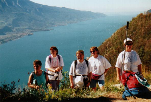 zum Vergrößern hier klickenVom Hauptquartier Riva, am Nordufer des Sees, unternahmen die Wanderer- und Kletterfreunde aus Rheinhessen auch in diesem Jahr wieder anspruchsvolle Touren. Zunächst stieg man von Progesina, 530m über dem Nordwestufer des Sees gelegen, über 600 Höhenmeter hinauf zum Cima di Mughera auf 1.161m, wo man traumhafte Ausblicke über den ganzen See genießen konnte. Dann ging es 1.100 steile Höhenmeter hinunter zum Touristendorf Limone, bekannt für seine Zitronengärten und sodann mit dem Schiff zurück ins schöne Riva.