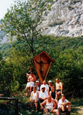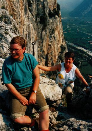 zum Vergrößern hier klickenzum Vergrößern hier klickenMit vereinten Kräften marschierte man dann zum letzten Bergangriff unweit des idyllischen Städtchens Arco, ins Mekka der Kletterkünstler, gerade 6km von Riva entfernt. Noch einmal zeigten alle, was in ihnen steckt und meisterten ohne größere Probleme einen als schwierig eingestuften Klettersteig nahezu senkrecht hinauf an einem von Gletschern in Jahrmillionen glattgeschliffenen Felsenriff. Dies war ein eindrucksvoller Schlusspunkt der anstrengenden Gebirgswoche, bei der sowohl der älteste Teilnehmer, Anton Bork mit 63 Jahren, als auch der jüngste Teilnehmer, Rainer Erbes mit 13 Jahren, überzeugend durchgehalten haben. Für das allseits gute Gelingen ein dickes Lob an die Organisatoren Edgar Schuch und Hans Siegfried Dexheimer, sowie an die Filmemacher Norbert Östreicher und Sigmund Jung.