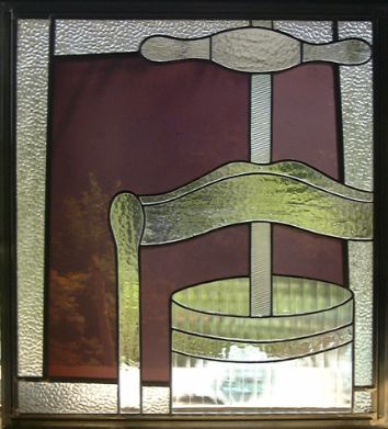 So war der Altbau in meiner Vorstellung und als Skizze recht schnell und zwanglos mit Bleiverglasungen ausgestaltet, die Einbettung der Gemeinde in die rheinhessische Landschaft und ihre geographische Lage im Herzen Rheinhessens thematisiert. Nur war noch keine der bürgermeisterlichen thematischen Vorgaben abgearbeitet. Die Themen - Wein, Gesang, Kunst und Sport - fehlten noch vollständig. Und hier wurde es für mich schwierig.