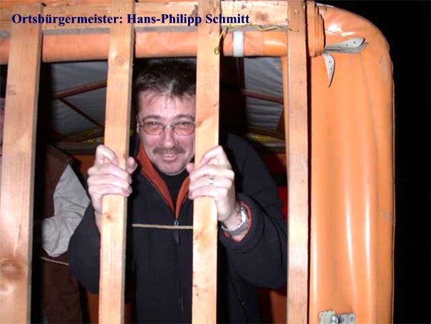 Nach dem Ortsbürgermeister Schmitt den Schlüssel zum Rathaus an die Narren übergeben hatte wurde er "ruhig gestellt" und die närrische Flagge gehisst. Von nun an regieren wieder die Narren während der fünften Jahreszeit in Spiesheim.