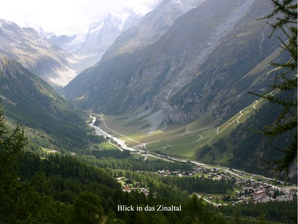 Am letzten Tag war noch mal Panorama angesagt, was jedoch wegen der ständig aufsteigenden Nebel nicht so ganz gelang. Der Weg führte von Zinal über Soreboi bis zum Petit Mountet und durch das Tal der Navisence wieder zum Ausgangspunkt. Wenn die umliegenden Viertausender frei zu sehen sind, angeblich eines der schönsten Schaustücke der Alpen. An diesem Tag eher durch die grotesken Nebelschwaden ein Anreiz für Hobbyfotografen einen dieser majestätischen Berge in Nebel eingerahmt auf einem Bild zu verewigen. Wer hier die glücklichere Hand bzw. den besten Blick für solche Schnappschüsse hatte wird beim jährlichen Abschluss beim Bilder schauen entschieden und sicherlich seine Anerkennung finden.