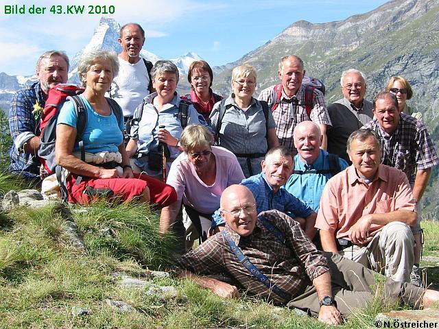 Als besonders interessante Tour erwies sich der mehr als 7 stündige Panorama-Höhenweg von Grächen entlang an den Steilwänden des Saas-Tales mit luftigen Tiefblicken sowie toller Sicht ins Rhonetal, zum Aletschgletscher und auf das gegenüberliegende Bergmassiv mit Bietschhorn (3934) und Fletschhorn (3875). Dieser Weg wird wegen seiner vielfältigen Aussichten von Kennern als schönster und eindrücklichster Höhenweg der Alpen bezeichnet. Gleich zum Wochenbeginn und jeden Tag aus jedem Blickwinkel war jedoch unser Augenmerk insgeheim immer in Richtung Matterhorn orientiert. Die Faszination dieses wie ein Zahn in den Himmel ragenden Berges lässt das Herz eines Bergfreundes immer wieder höher schlagen. So musste es ganz einfach sein, dass wir auf dem gegenüberliegenden Höhenweg von Täschalp bis Zermatt unterwegs waren um die vielfältigen Ausblicke zum Matterhorn zu genießen. Inbegriffen die schätzungsweise hunderte von Fotos aus allen nur möglichen Positionen. Gemeinsamer täglicher Abschluss jeder Tour war der gnadenlose Einstieg in das eiskalte Wasser der nahe gelegenen Kneipp-Anlage. Eine Gaudi für Gesundheit und Wohlergehen.